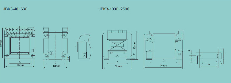 JBK3系列机床控制变压器适用于交流50/60HZ,输出电压不超过1000V,输入额定电压不超过1000V,作为各行各业的机械设备,一般电器的控制和工作照明,信号灯的电源之用。